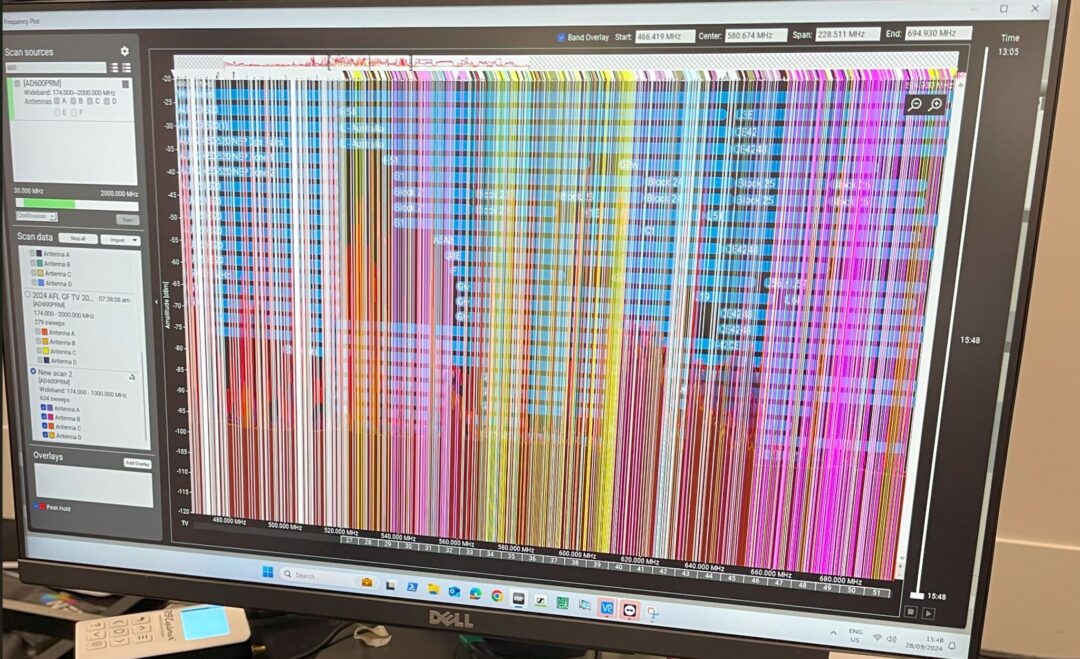 As with all live events, most of the hard work is in the planning stage and this is also true for RF Spectrum Management. PRM commenced working on this project in July. This included reaching out to the major broadcasters, both rights holders and non-rights holders, multiple live production companies that were going to be onsite, communications providers and activation managers to ascertain their RF requirements. It really isn’t possible to conjure up nearly 900 compatible frequencies the day before the gig.
